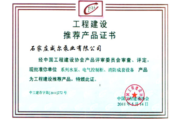 工程建設推薦產品證書